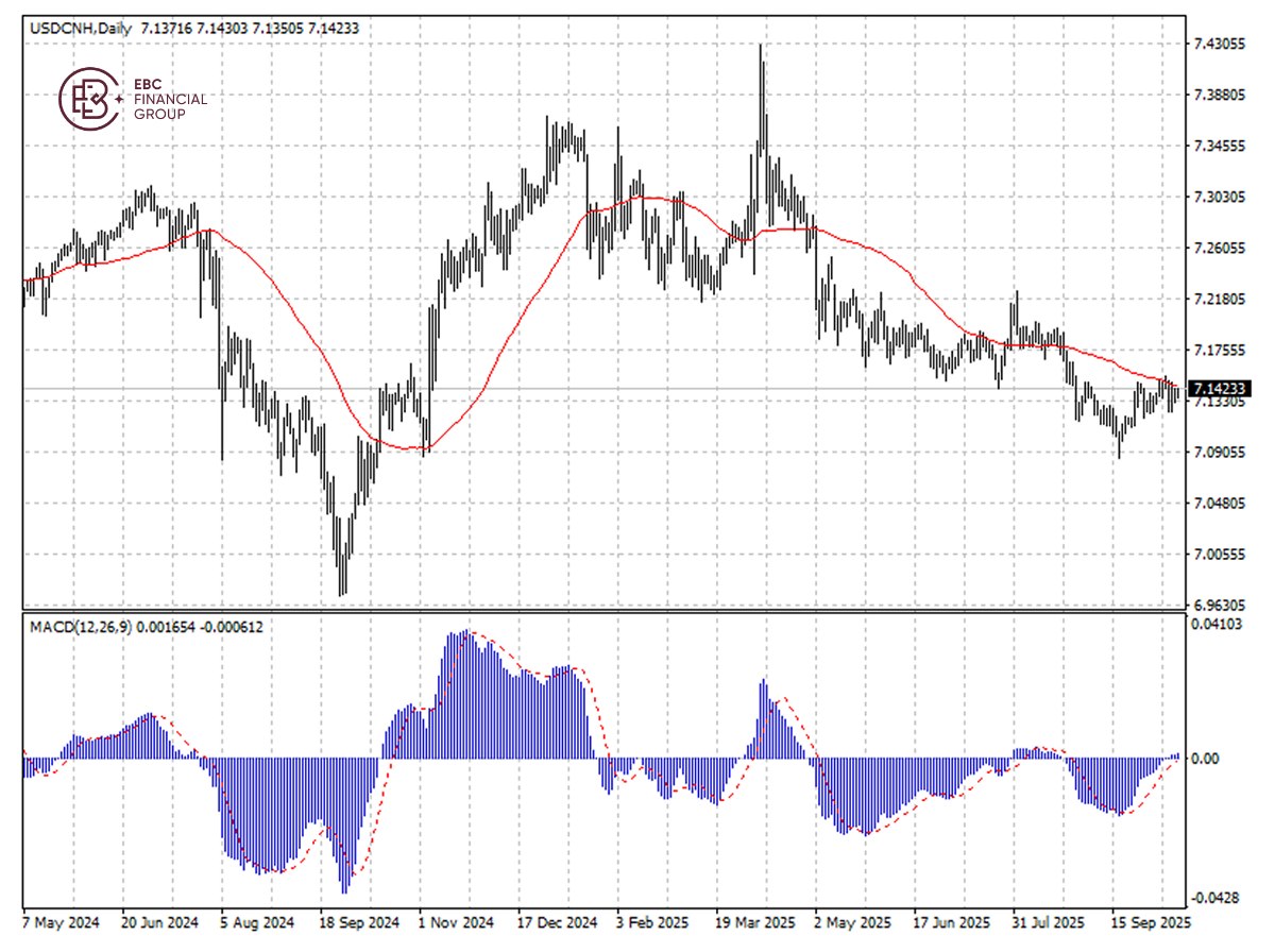 The yuan continued to consolidate around 50 SMA, and the bearish MACD divergence suggests downside potentials. We expect it to retest 7.1480 per dollar in the short term.
