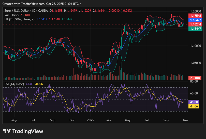 EUR/USD is gaining ground toward 1.1650, driven by USD softness and anticipation of key German IFO survey data. The Euro is also supported by a recent US government shutdown and dovish Fed expectations.