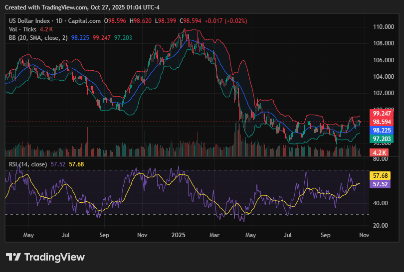 The US Dollar Index weakened below 99.00 amid soft US CPI inflation and renewed bets on imminent Fed rate cuts. The dollar’s retreat reflects shifting sentiment as economic data guides expectations.