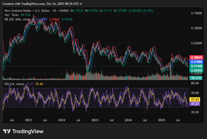NZD/USD has gathered strength to near 0.5750 as US government shutdown fears and USD weakness boost demand for selective risk currencies. The Kiwi’s move reflects both Asia-Pacific risk flows and improved sentiment toward commodity exporters.