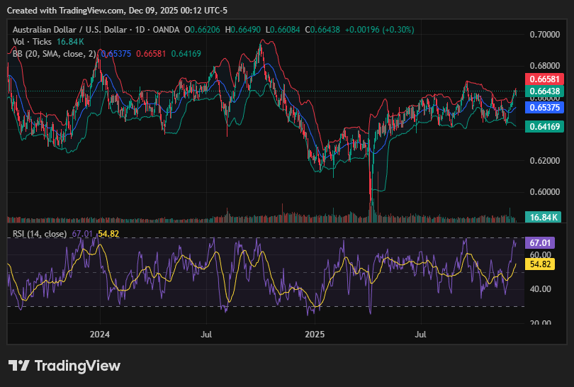 Forecast: If RBA maintains hawkish-tilt and the Fed signals cuts, AUD/USD could test 0.6650–0.6680; weakness below 0.6600 may test support toward ~0.6530.