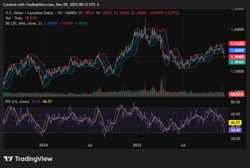 USD/CAD is trading in the mid-1.3800s, showing a negative bias as the Canadian dollar gains modest strength. However, losses remain limited amid US tariff-related uncertainty and global risk factors.