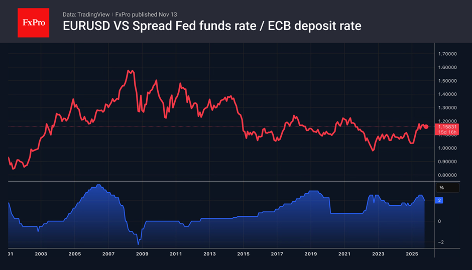 The same can be said about monetary policy. The ECB has most likely ended its easing cycle, barring any major shocks. The federal funds rate is likely to continue falling amid a cooling US labour market and economy. The euro has advantages over the dollar. However, in the short term, mixed data could lead to mixed movements in EURUSD.