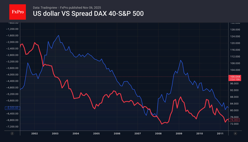 Strong macroeconomic statistics, rising Treasury bond yields, and a drop in the rate cut probability in December to 62% did not help the dollar. Encouraged by the possibility of the Supreme Court abolishing tariffs, the US currency's competitors are finding footing. At the same time, the pullback in US stock indices allows parallels to be drawn with events 25 years ago.