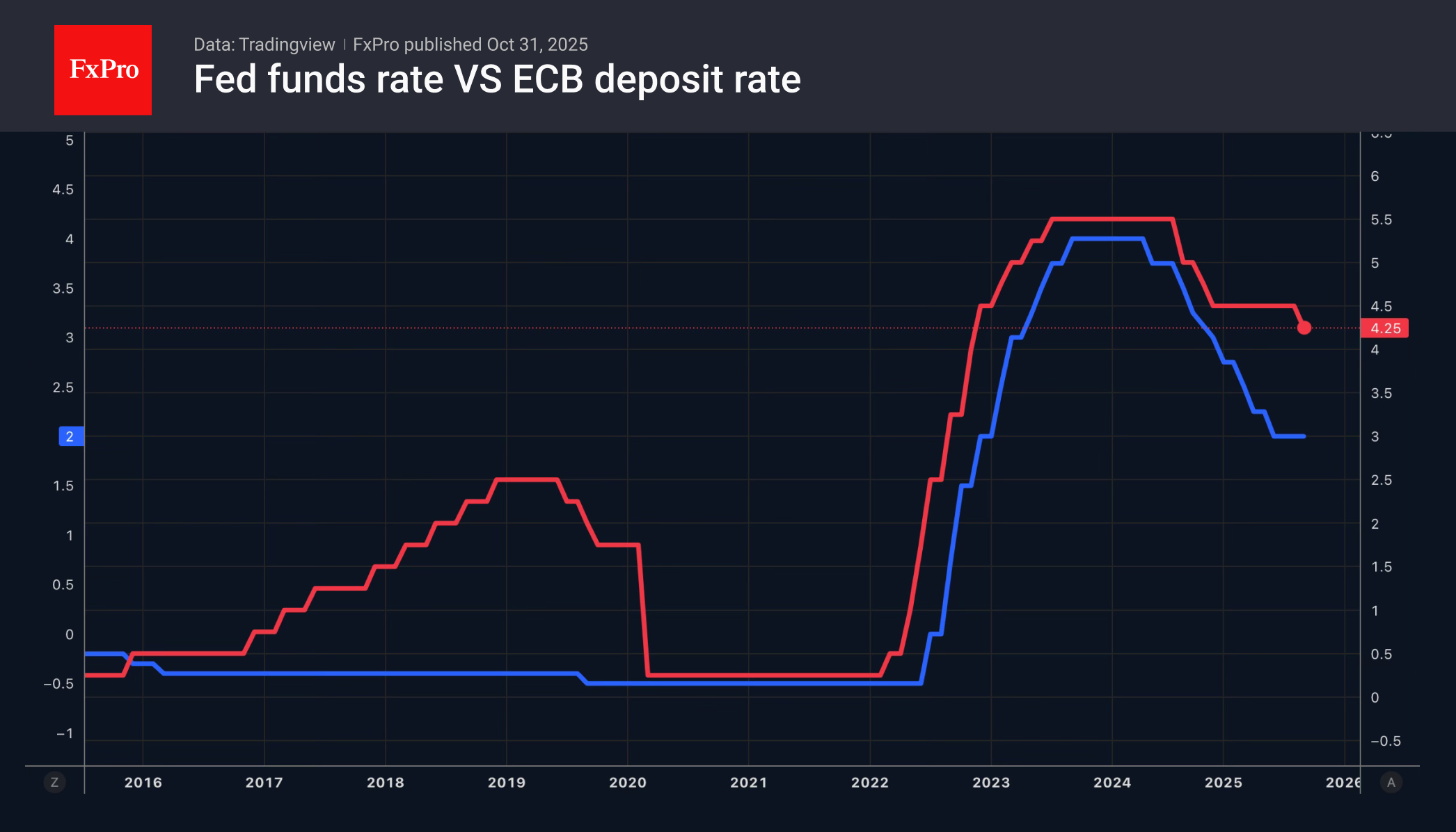The ECB has no reason to complain about the eurozone economy. In the third quarter, it accelerated from 0.5% to 0.9% year-over-year, thanks to the gradual adjustment of exports to US tariffs, a strong labour market, solid household balance sheets, and a prolonged cycle of rate cuts.