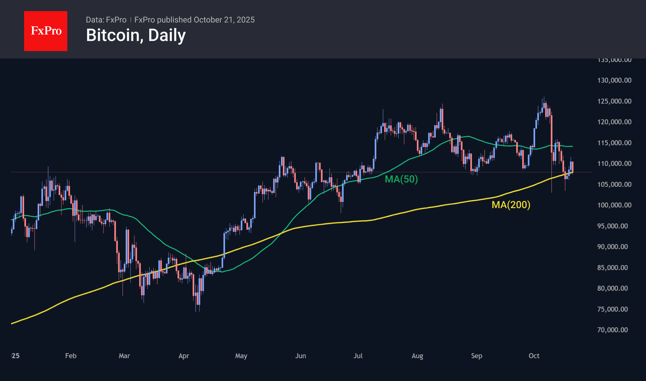 Bitcoin at $108K has once again fallen to its 200-day moving average. It is pointing upwards and is now 30% higher than the levels seen in March-April, when BTC last dipped below it. The spring scenario of prolonged consolidation around a critical line and a further breakout now looks like a hopeful scenario for bulls. However, there are still risks that the first prerequisites for the next prolonged bear market are now forming. BTC's rebound from its lows is encouraging, but the structure remains fragile. The decline in trading volumes on spot platforms and derivatives markets signals a decline in confidence and demand, according to Glassnode.