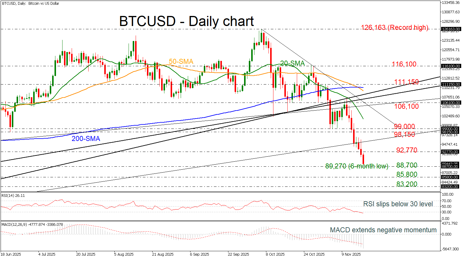 BTCUSD’s freefall; 6-month low signals bearish momentum