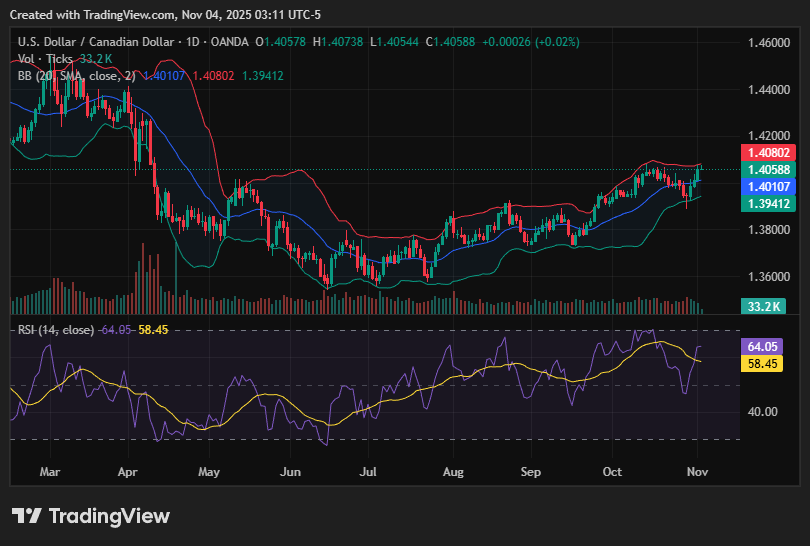 USD/CAD traded above 1.4050 as the U.S. Dollar strengthened on firm yields and weaker oil prices weighed on the Canadian Dollar. Investors anticipate cautious tones from both the Fed and the Bank of Canada (BoC) this week.