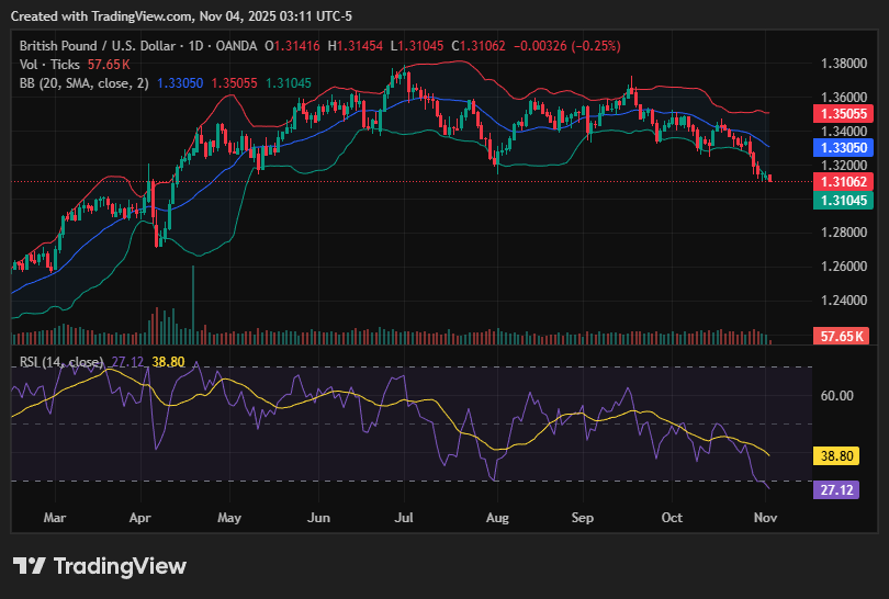 GBP/USD steadied near 1.3150 after a prolonged downtrend, as the Pound found support from softer U.S. Treasury yields and short-term profit-taking on the Dollar. Market participants remain cautious ahead of key U.S. data, which could redefine expectations for the Federal Reserve’s policy path.