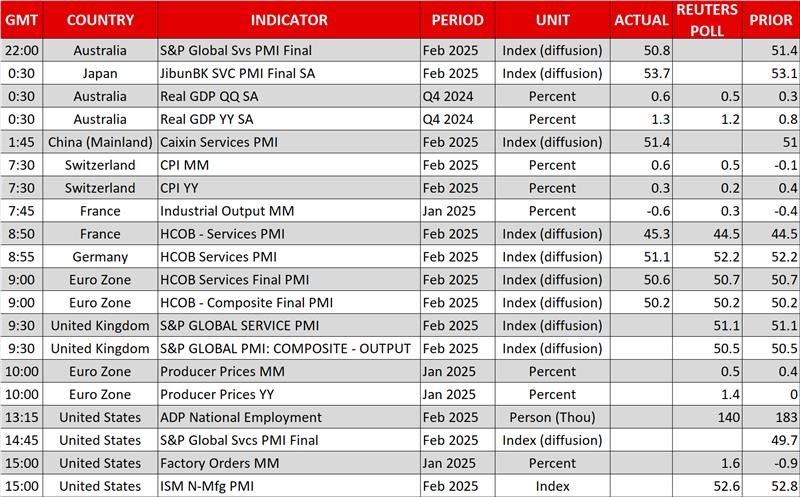 The Atlanta Fed GDPNow estimate, which pointed to a 2.8% contraction for the first quarter of 2025, may be revised lower if the weakness in the US data continues, something that makes Friday’s NFP report also extra important.