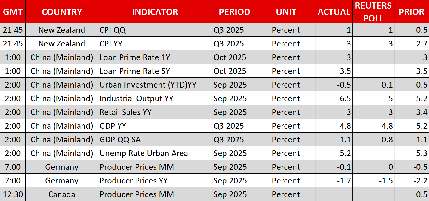 Asian stocks surged at the close on Monday and European markets are also positive. Chinese indices were additionally boosted by solid economic data out this morning. China’s GDP grew by a stronger-than-expected 1.1% q/q in the three months to September, although annual growth slowed to 4.8% y/y. But a rebound in industrial output in September backed the view that, so far, the impact of the US trade war on the economy has been minimal.