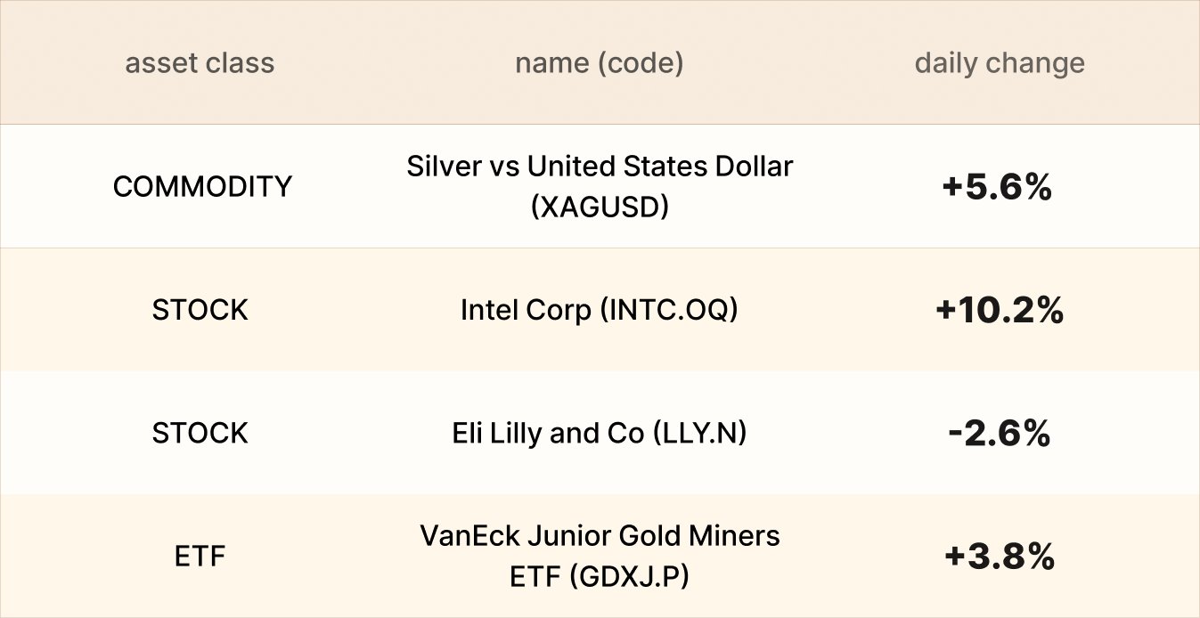 As of market close on 28 November, among EBC products, Intel shares led gains following a report that it may win a contract to produce chips for Apple devices.