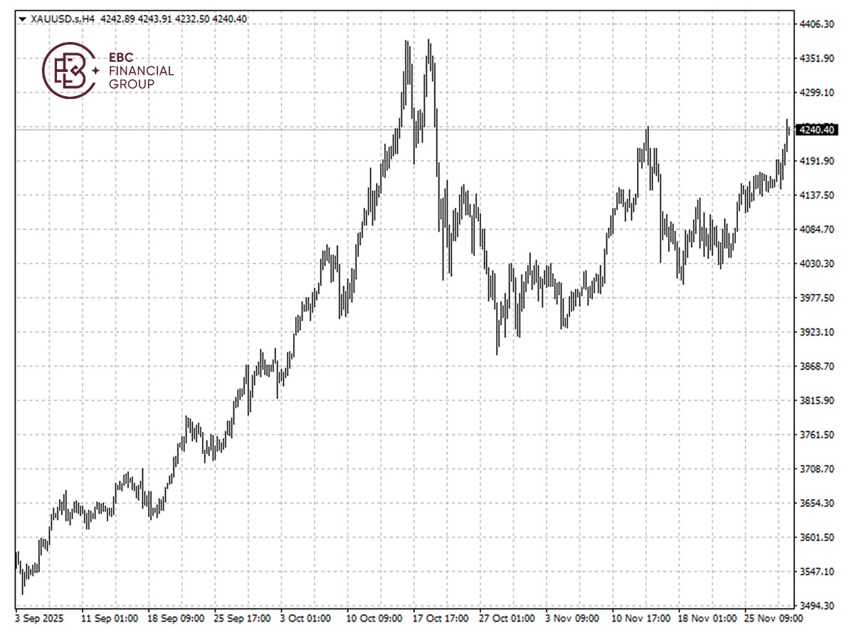 Gold extended gains from the previous session, while silver hit another fresh record high. The RatingDog China General Manufacturing PMI unexpectedly contacted in November, missing analysts' expectations of 50.5.