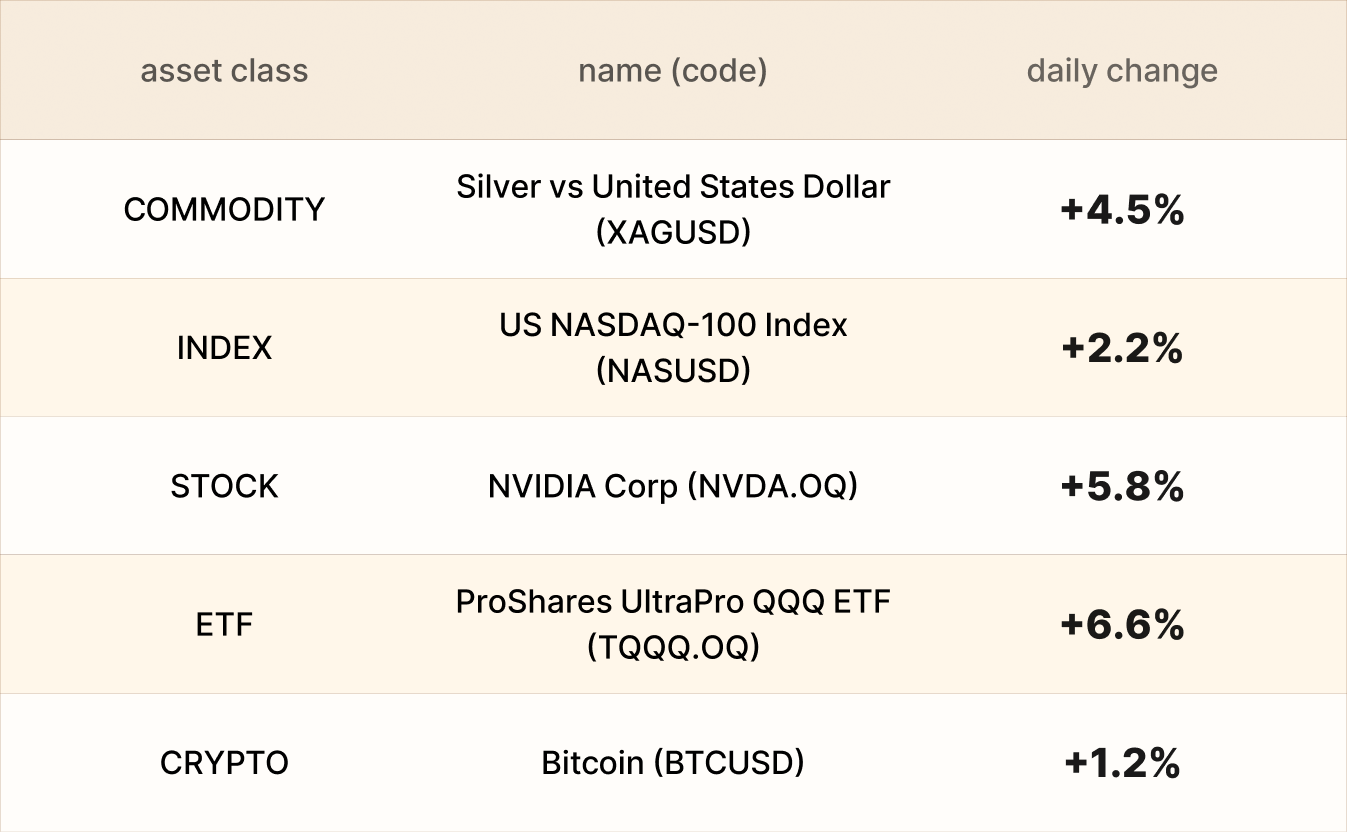 As of market close on 10 November, among EBC products, ProShares UltraPro QQQ ETF led gains as the end of the longest government shutdown in US history boosted risk sentiment.