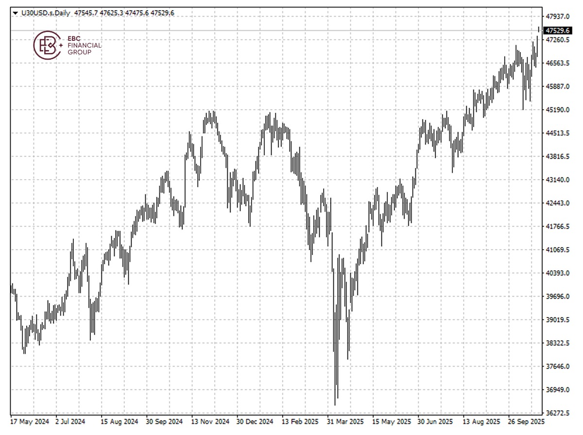 The Dow has been trending higher unhampered, and the path of least resistance is to hit a fresh peak later this week. But 48,000 is seen as potential hurdle.