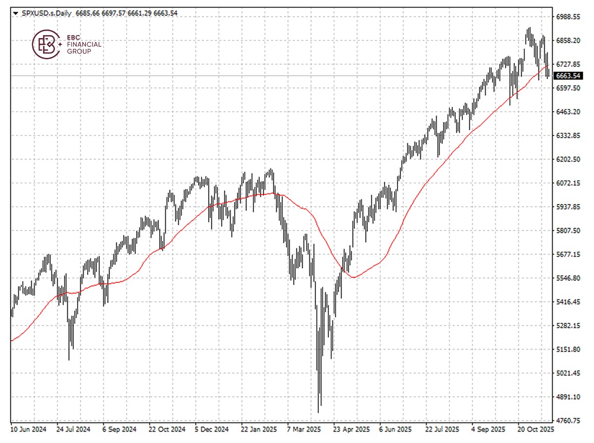 Breaking below the 50 SMA, the S&P 500 index is heading towards the low around 6,640 which could rein in more losses. If the level does not hold, another leg lower would be in the cards.