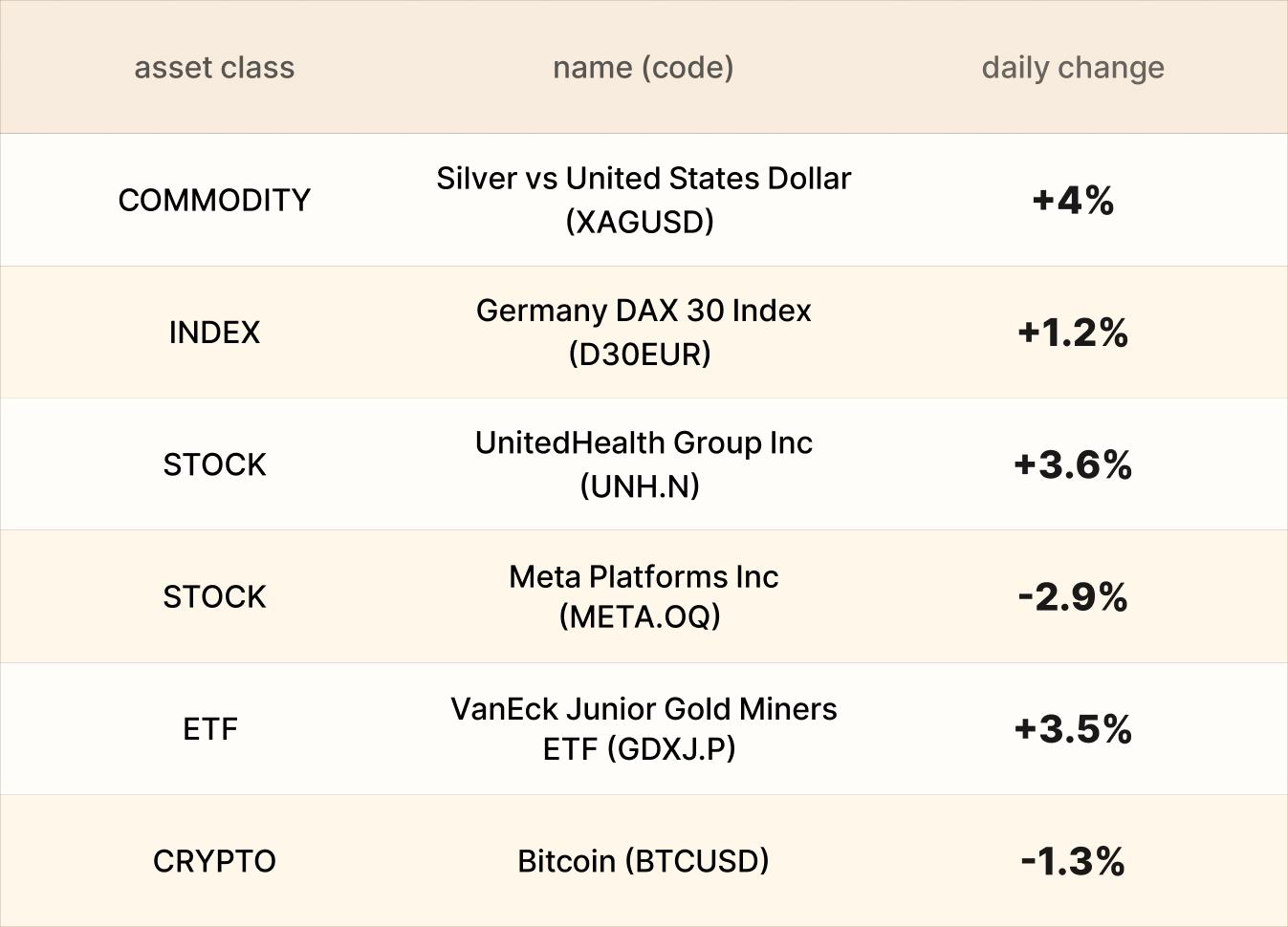 As of market close on 12 November, among EBC products, UnitedHealth Group shares gains after new CFO outlined a turnaround plan focused on financial discipline, portfolio simplification, and tighter Optum integration.
