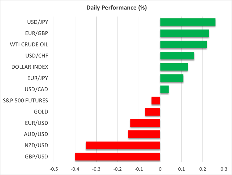 Gold notched up its fourth consecutive record close on Wednesday, closing above the $4,000 mark for the first time. The price is heading lower today, though it’s managing to hold above the $4,000 handle for the time being. In addition to the easing of geopolitical risks, the stronger US dollar could also be slowing gold’s bull charge, raising the possibility of a deeper correction in the near term.