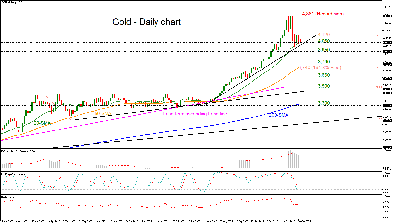 Gold is currently testing the 4,060 support level and the 20-day simple moving average, as easing geopolitical tensions, particularly progress in US–China negotiations, have dampened demand for safe-haven assets.