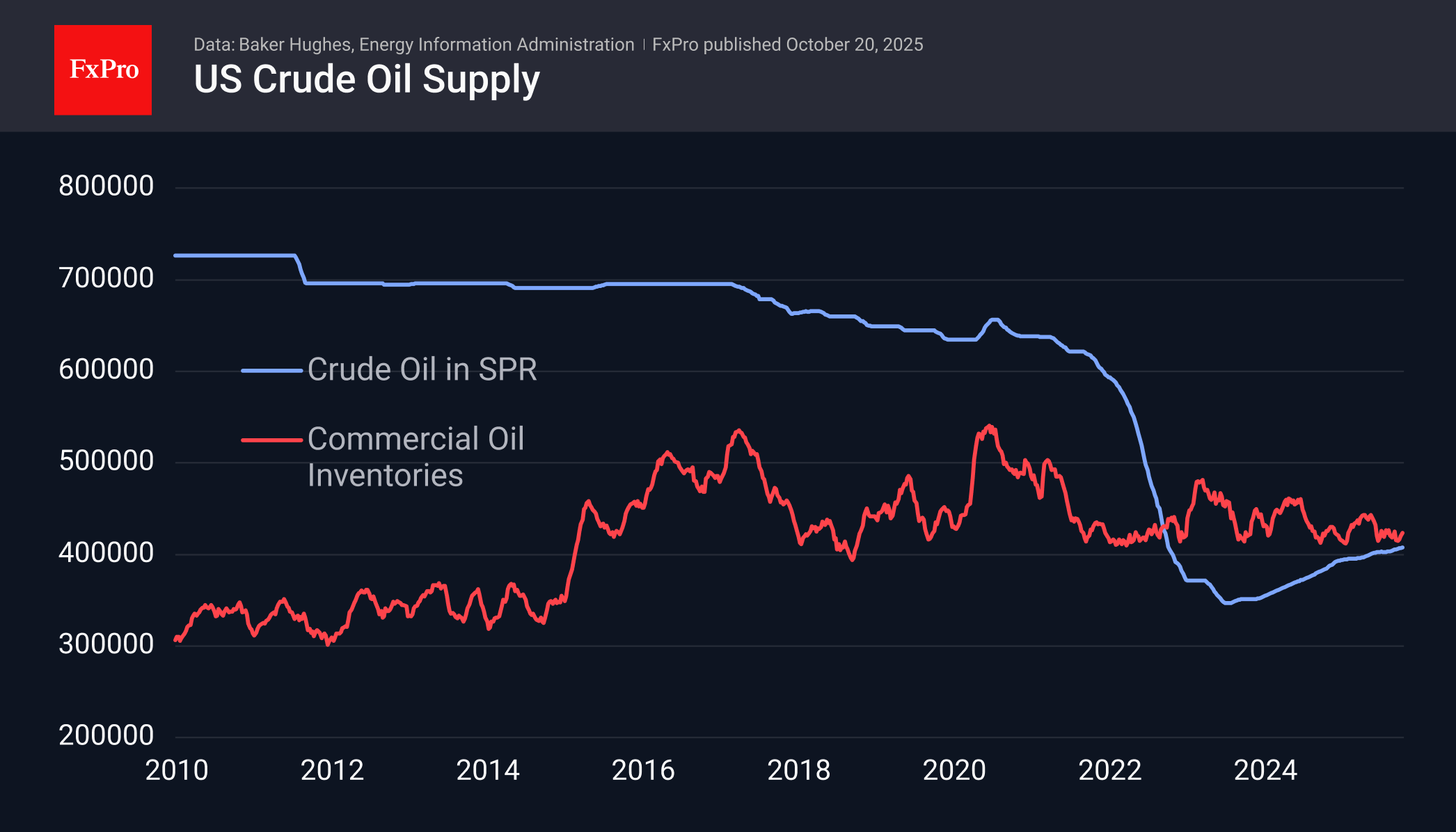 Inventory figures are a stabilising factor. Commercial inventories in the US are at the lower end of the range for the last decade, but they were about the same in January 2020, and six months later, this figure set a new record. However, without a collapse in consumption, such rapid growth should not be expected. The US government may also move to more actively rebuild the strategic reserve sold off in 2022.