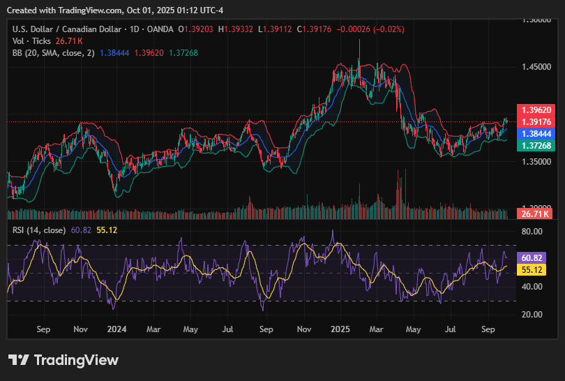 USD/CAD is holding firm above 1.3900, with the Canadian Dollar under pressure from weaker oil prices and dovish signals from the Bank of Canada. Traders are cautious ahead of U.S. political and inflation data.