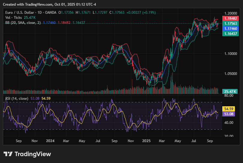 EUR/USD is steady around 1.1750, with traders cautious ahead of potential U.S. government shutdown risks and key Eurozone inflation data. The pair remains rangebound as investors await fresh catalysts from both sides of the Atlantic.
