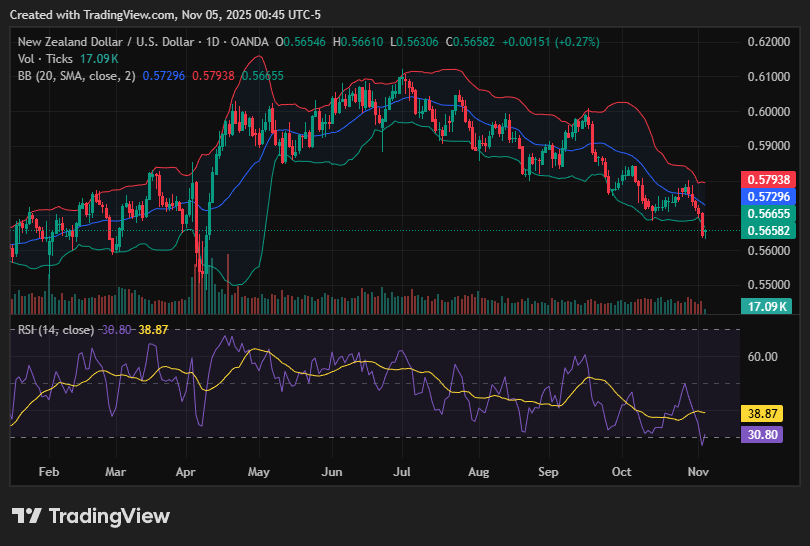 The New Zealand Dollar slumped below 0.5650 after data showed unemployment rising to a nine-year high, signaling deepening labor market weakness. The release sparked fresh selling as traders anticipate a dovish RBNZ tone in upcoming meetings.