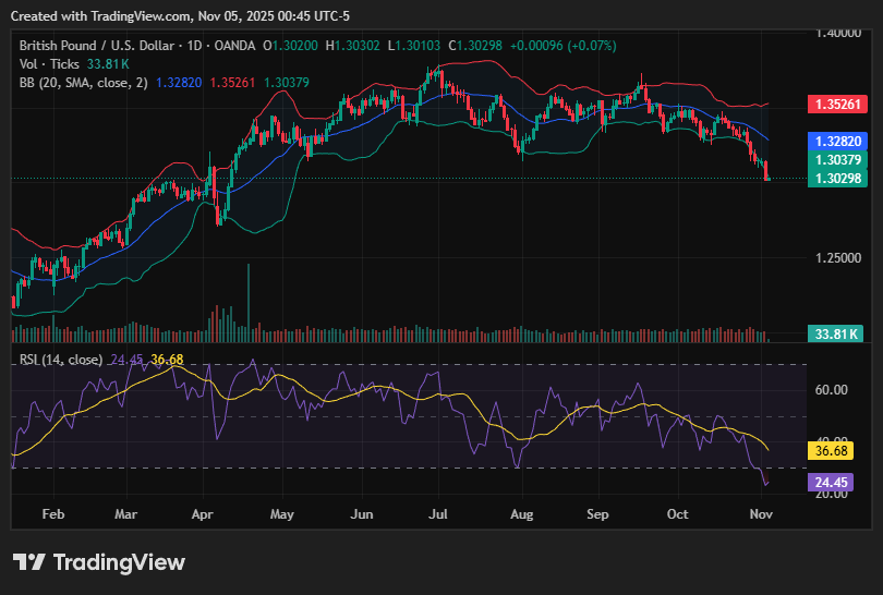 The British Pound plunged to fresh multi-week lows, trading near 1.3040, as selling pressure intensified amid renewed U.S. Dollar strength. The move reflects worsening U.K. growth sentiment and persistent market doubts over BoE’s rate outlook.