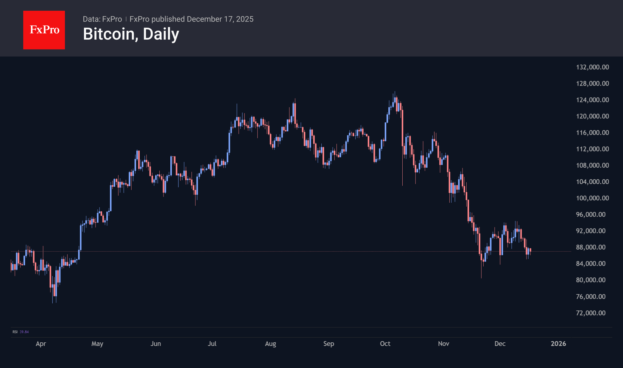Bitcoin rose to $88K on Tuesday and then returned below $87K on Wednesday afternoon. As with the market as a whole, we are seeing impressive selling pressure with short pauses for a rebound. Bitcoin is still underperforming the stock market. However, this time we see it more as a sign of internal weakness in the crypto market and widespread profit-taking, rather than a bad omen for stocks, but it cannot be completely ruled out.