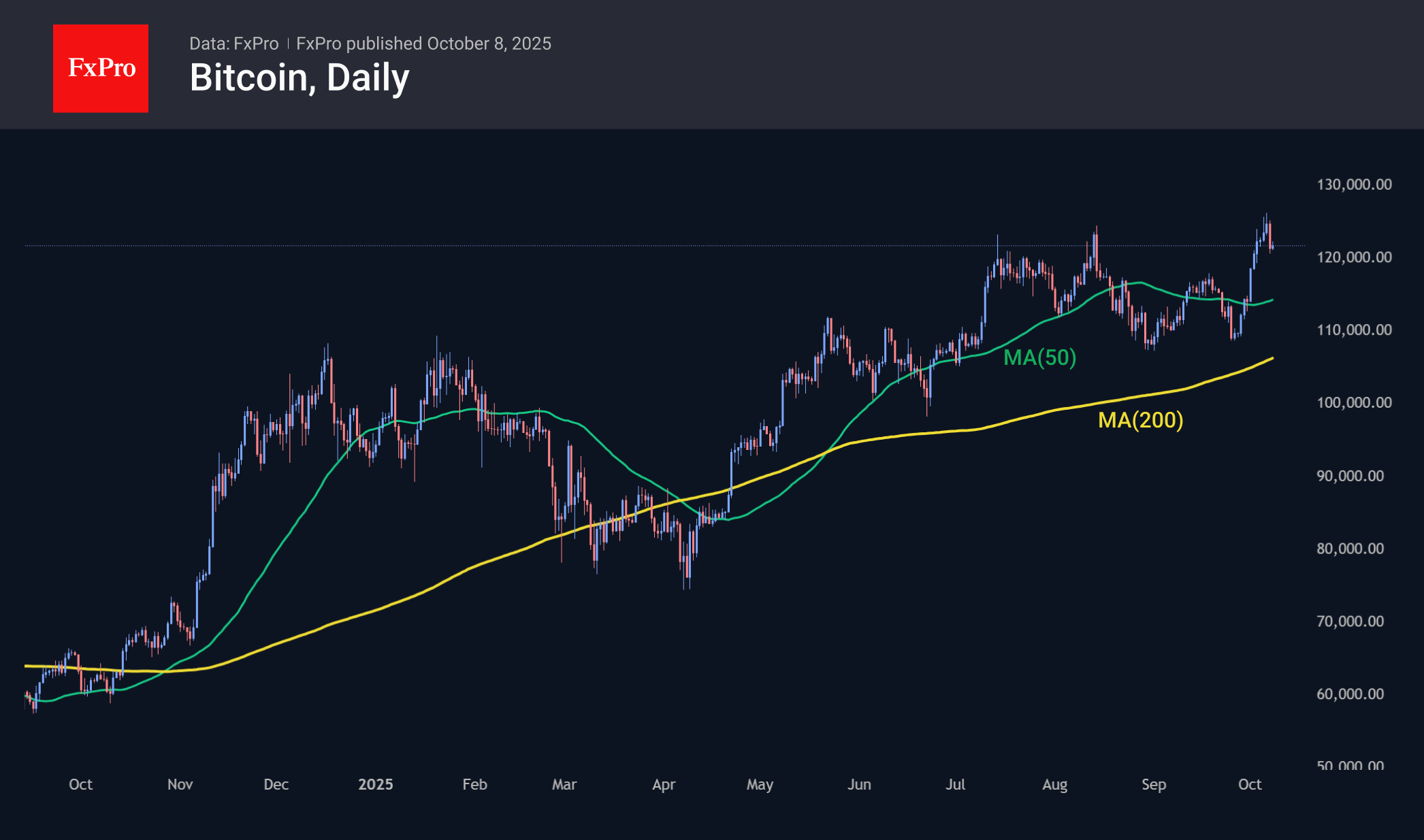 Bitcoin lost more than 4% during Tuesday's active US session, barely holding above $120k. It stabilised on Wednesday at the start of the day in the $121-122K range, turning July's resistance area into support. On the buyers' side, gold and stock indices are at historic highs. However, we also note the strengthening of the dollar index to its highest levels since early August. If this becomes a trend, a deeper decline is inevitable.