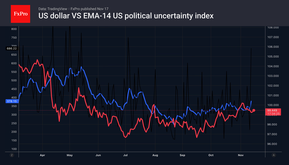 Investors understand that the peak of tariffs has passed and that the TACO or ‘Trump Always Chickens Out’ trade is alive. There is no point in hedging currency risks on investments in US stocks and bonds by selling the USD. The reduction in hedging ratios is helping the Dollar index.The same applies to fears about inflationary pressures. Donald Trump's announcement of $2,000 cheques to Americans, funded by tariff revenues, is pro-inflationary. Thus, inflation expectations and the Fed's attraction to keep rates will increase.Nevertheless, the further fate of the greenback depends on new data. The BLS has announced that it is ready to publish statistics on the US labour market for September on November 20th, a day after the October FOMC minutes release. These publications could ultimately determine the fate of the key rate on 10 December. As a result, EURUSD is bracing for more volatility.The same does not apply to USDJPY. The pair has most likely decided on the direction of its further movement. Despite verbal interventions, investors have not heard any words from the government about its readiness to act decisively. Experience from previous interventions in the Forex market shows that without the Bank of Japan tightening its monetary policy, the downward trend for the yen is unlikely to be broken.