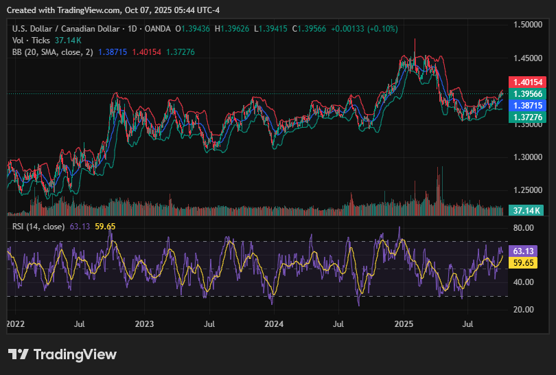 USD/CAD climbed toward 1.3950 as the US Dollar extended its rebound, aided by softer crude prices and dovish expectations for the Bank of Canada. The pair maintains a firm tone amid cautious global sentiment.