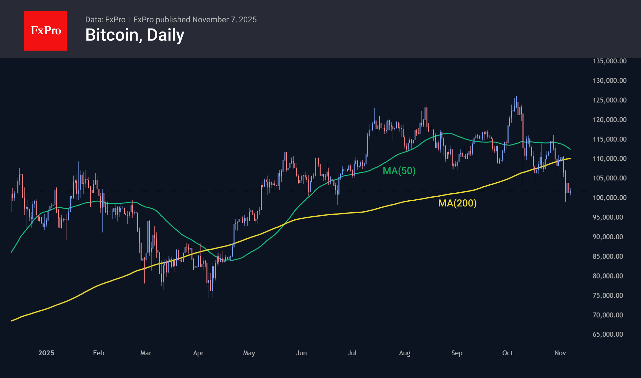 Bitcoin has managed to stay above $100K, with an apparent increase in buying as it approaches this psychologically important round level. Moreover, BTC continues to hover around the 50-week moving average. A consolidation below this level would be a clear sign of a reversal. Most likely, sellers have not yet fully satisfied their interest, preferring to unload at higher levels.