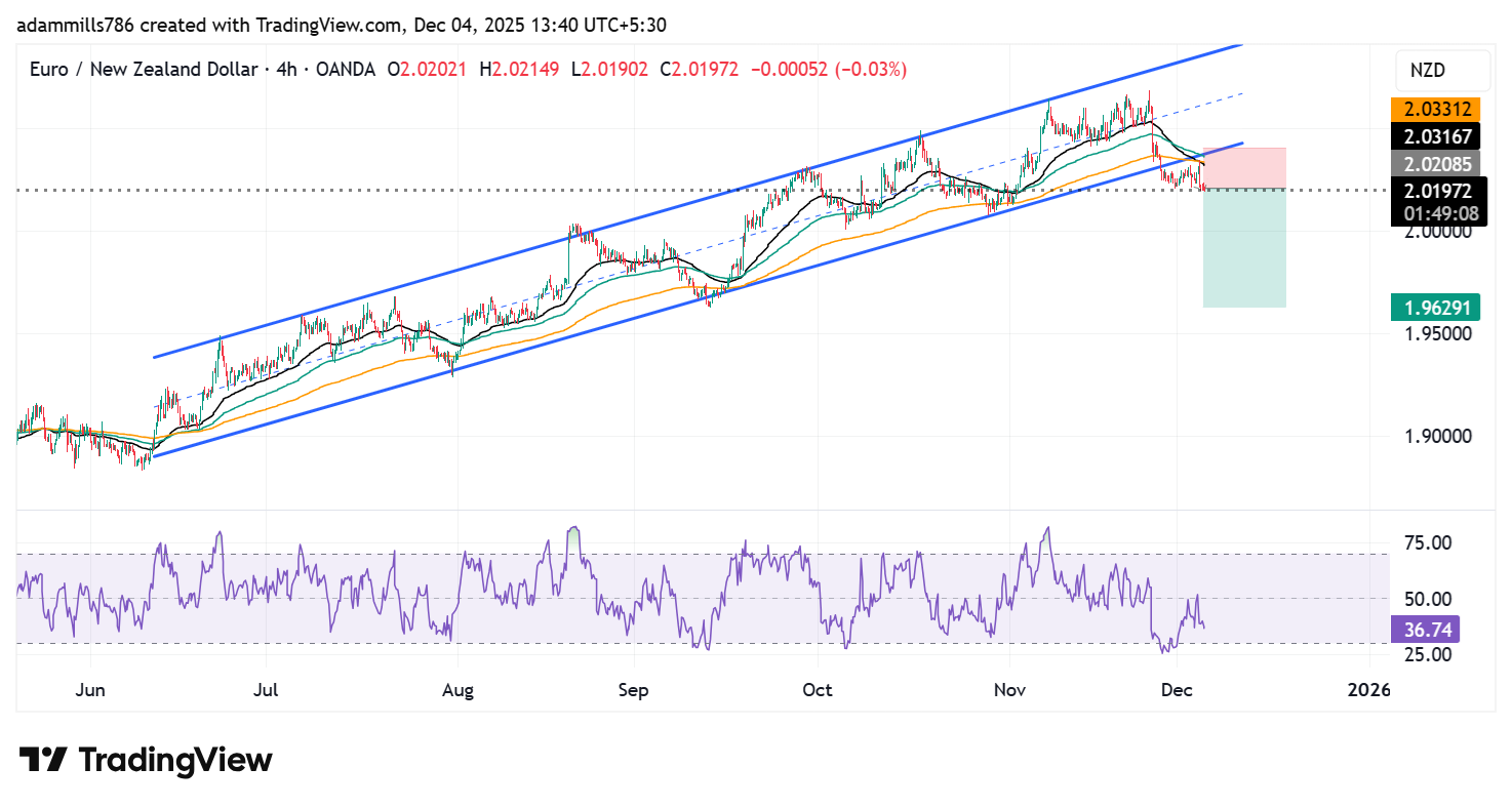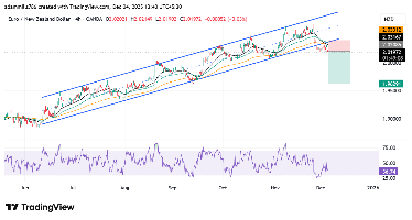 Short Sell Analysis – EURNZD (4H)Price has broken the long-term ascending channel, showing trend reversal from bullish to bearish.After the breakout, price retested the broken trendline and got rejected — a perfect sell confirmation.Price is trading below all EMAs, and EMAs are turning bearish (downward slope).RSI is below 50, indicating sellers are in control with room for further drop.Market structure shifted to lower highs and lower lows.There is clean liquidity below, giving strong downside targets.