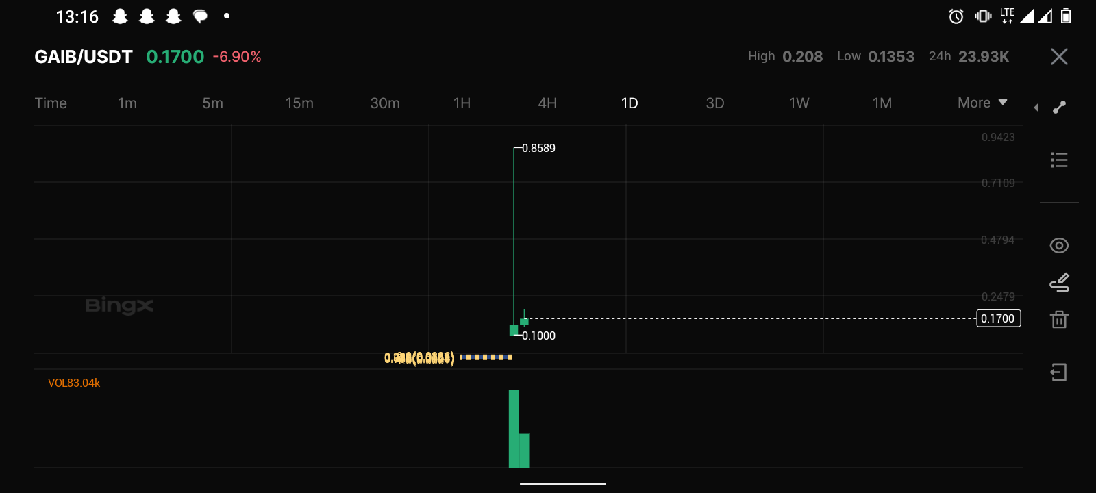 APTOS has been showing strong activity and while tracking charts on BingX, I checked GAIB’s performance. The moment I opened the chart, I saw that huge candle which took price near 0.85 before dropping to the 0.16 area. In forex terms, it looks like a breakout followed by a retracement into a fair zone.