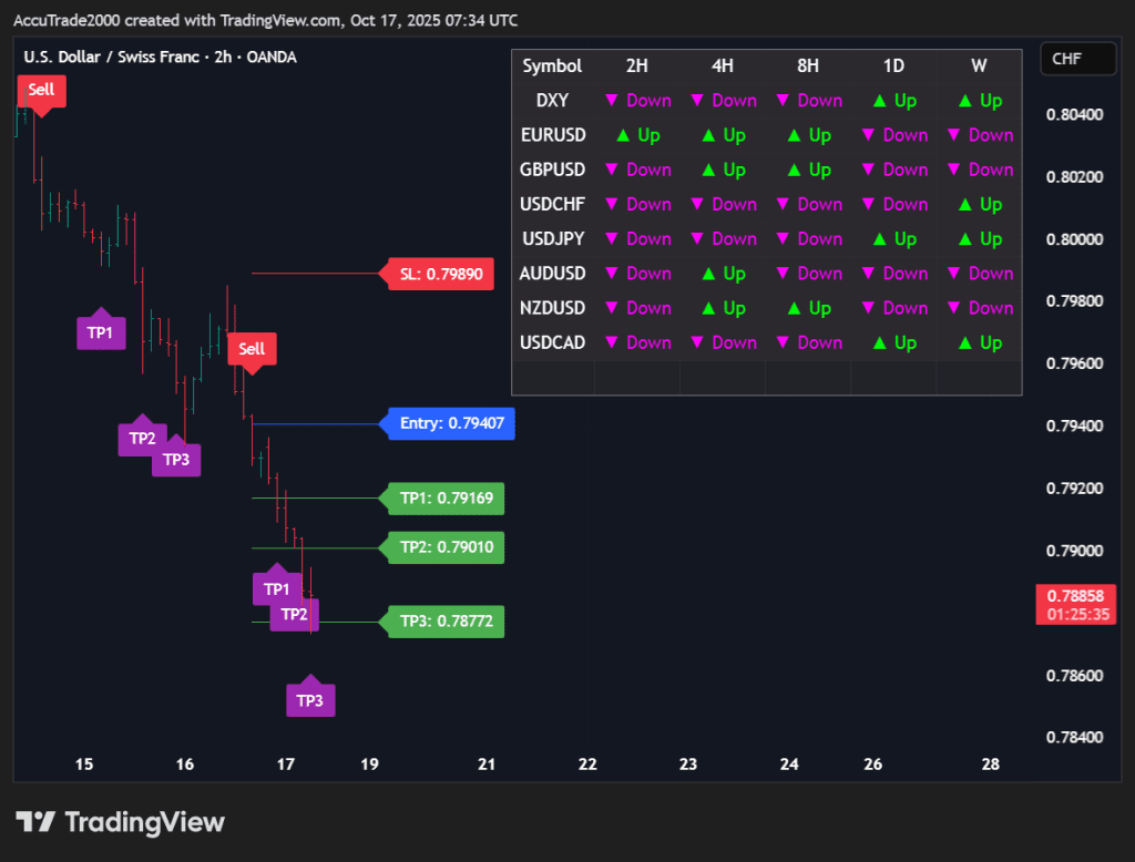 2025-10-17 USDCHF TP3 Hit on H2 Timeframe +63 Pips