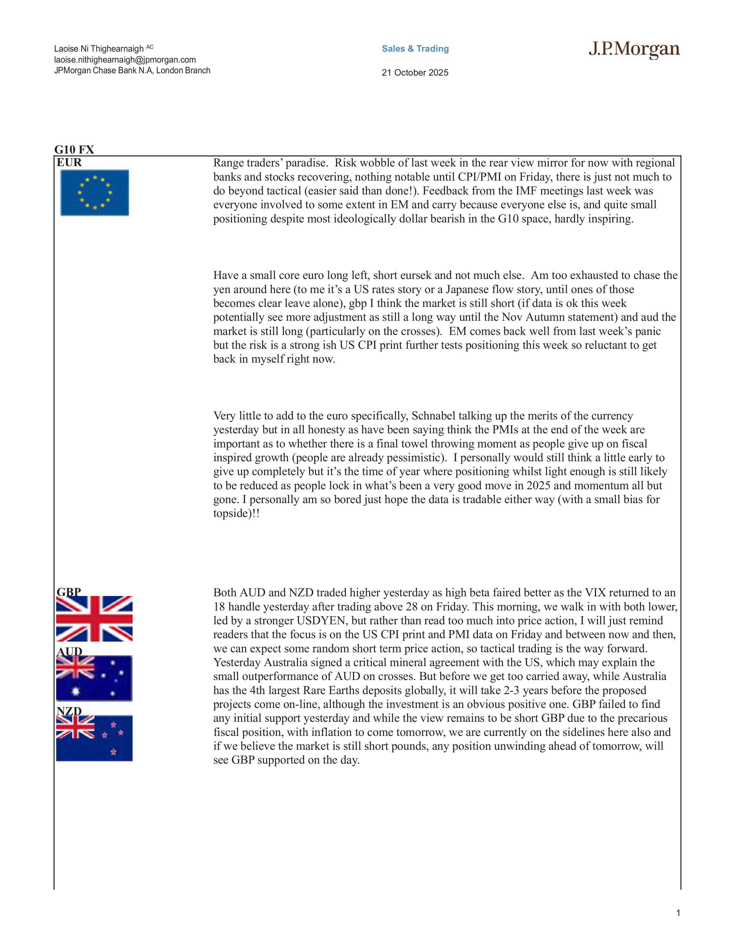 JPM London G10 FX Spot Desk for EURUSD, GBPUSD (Oct. 21th)