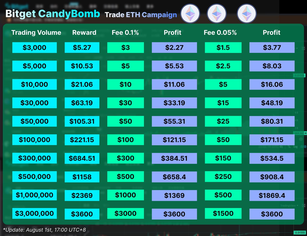 With this dip, I’ve been scaling back in slowly. What made it even better! Bitget’s running an ETH 10th Anniversary CandyBomb basically, you earn ETH just for trading as usual. Up to 1 ETH in rewards if you build volume. Not bad if you’re already active.