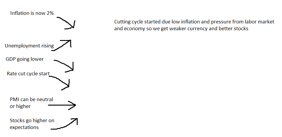 High interest rates also have a negative impact, as loans are expensive, businesses suffer because they cannot take out new loans at favorable rates, or are forced to pay higher rates on old loans. Economic growth is slowing down and inflation is declining, but many businesses are collapsing and people are losing their jobs, which is hurting the labor market, the economy, and the stock market.