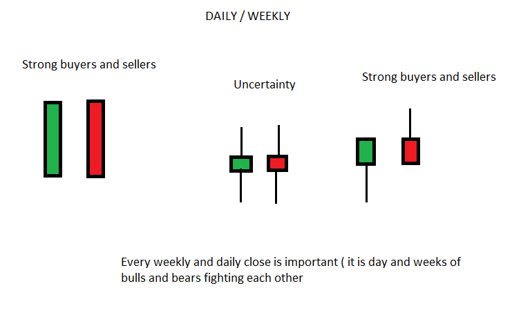 Traders usually don't care about the closing and opening of weekly and daily charts, even though this is very important. Every movement in the market means that someone voted with their money at some point, believing in something.