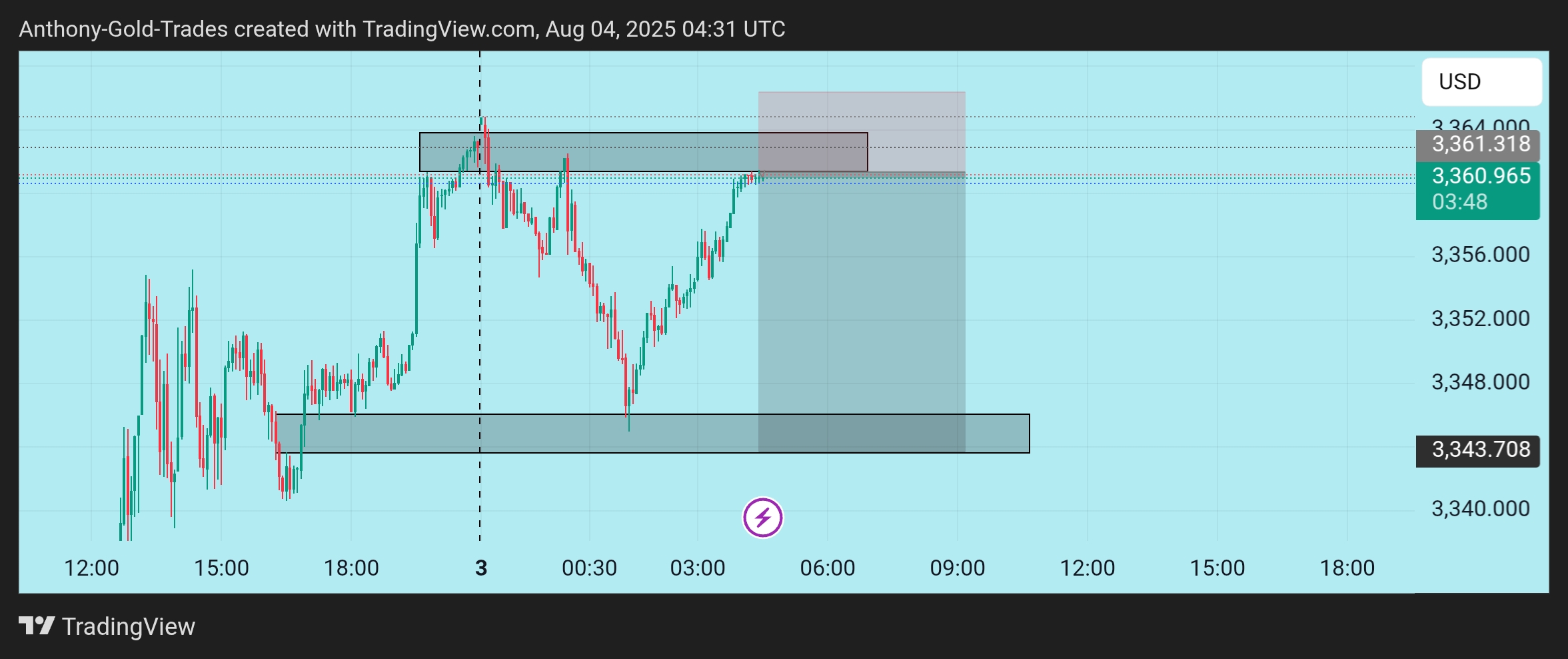 Price reached a strong resistance near 3360.995, where multiple rejections occurred earlier.